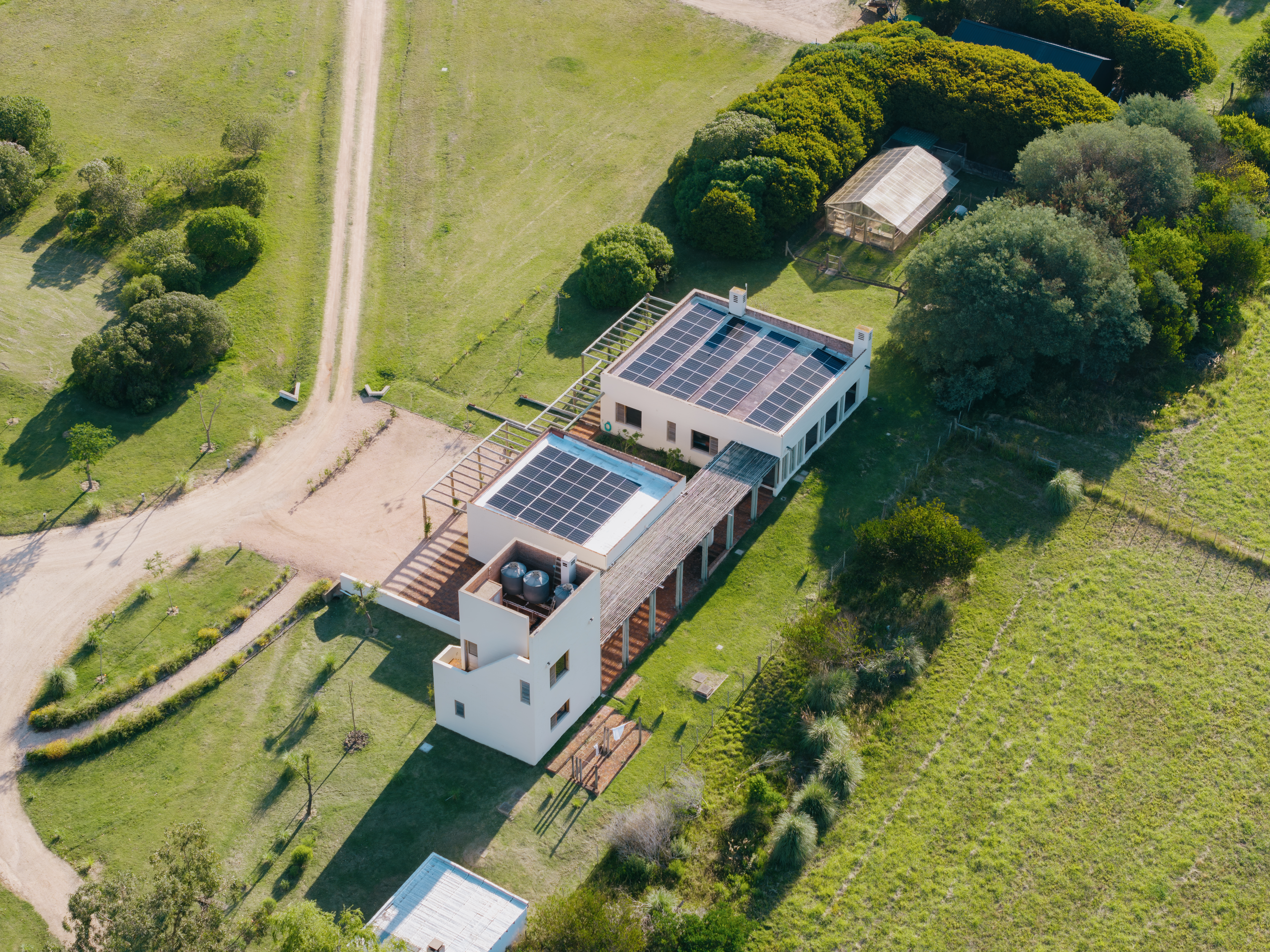 En una propiedad de gran extensión, la demanda energética es elevada y constante. El objetivo fue desarrollar un sistema que brindara independencia eléctrica sin alterar la estética natural del paisaje, integrándose de forma armónica con el entorno rural.